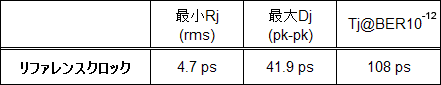 高速なシリアル伝送デバイスの性能は、リファレンスクロックが大きく影響します。そのため、リファレンスクロックにおいて、ジッタ値を小さく抑えることが、デバイスの性能の保証にとても重要なのです。 今年4月にリリースされたPCI Expressコンプライアンス1.1においては、クロックのジッタスペックの要求が以下の通りとても厳しくなっています。(下図参照)