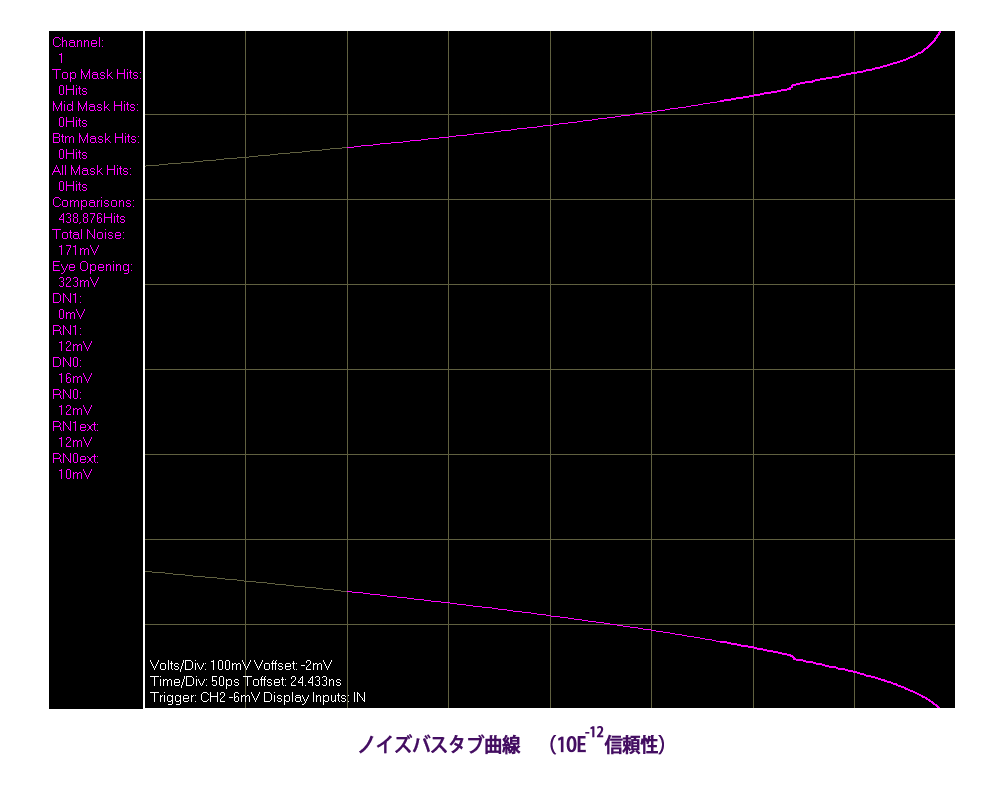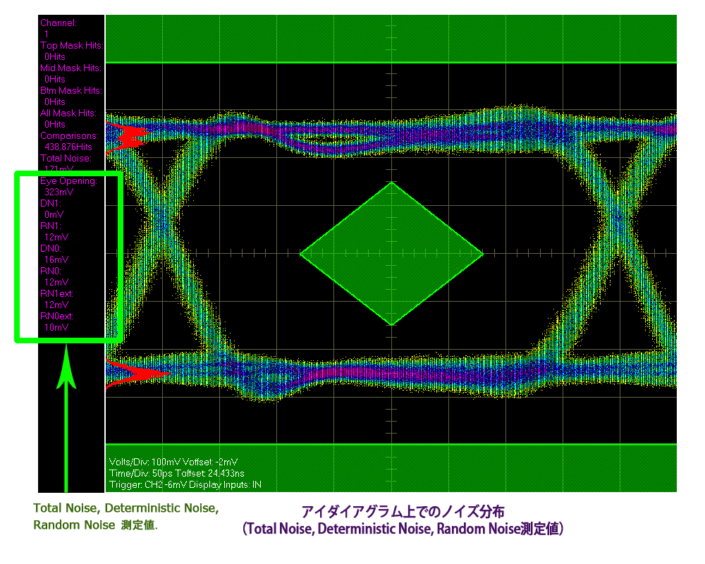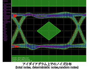 ● PCI Express Gen2, FBDIMMのコンプライアンスツールが新たに追加。 ● 3次オーダーPLL解析ツールも新たに追加。 ● 最大10CHまでの多チャンネルに対応。 ◇GigaView2.0ソフトウェア 〜シグナルインテグリティは、新たな世界へ〜◇ Total noise, Deterministic noise, Random noiseをはじめ、バスタブによる高信頼性の電圧ノイズ評価が可能です。下図はクリックで大きく表示されます。