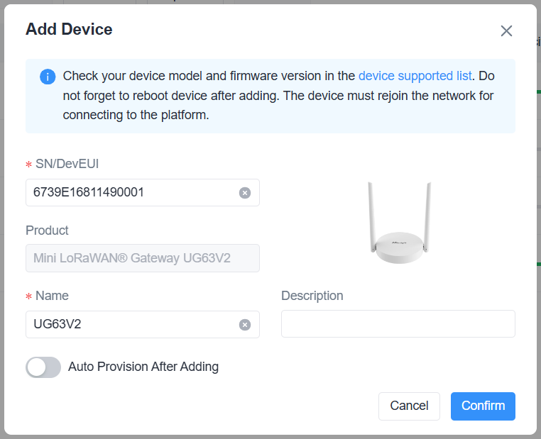 ● Milesightゲートウェイ:ファームウェア60.0.0.44以降のUG65/67、ファームウェア56.0.0.5以降のUG56