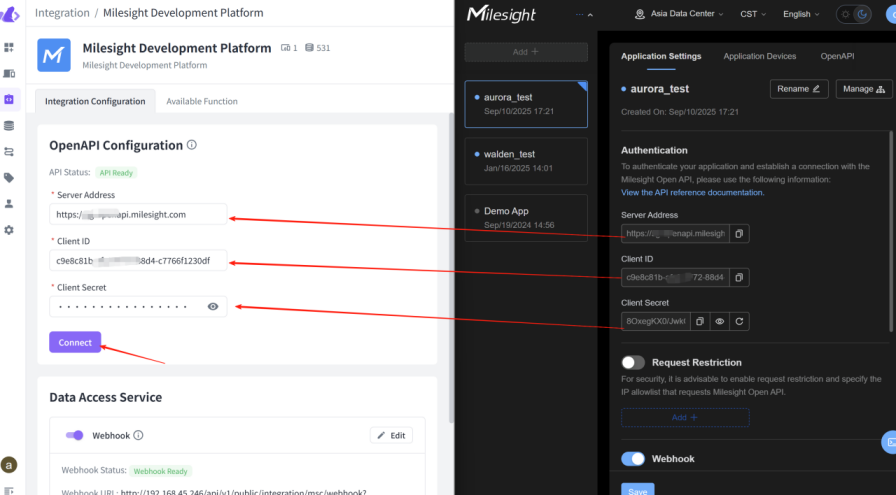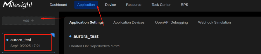 ステップ3:Milesight開発プラットフォームでアプリケーションを追加し、Beaver IoTプラットフォームとMilesight開発プラットフォームの両方でOpenAPIとWebhookを設定する。
