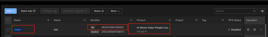 ステップ2:VS125-PをMilesight開発プラットフォームに追加する。