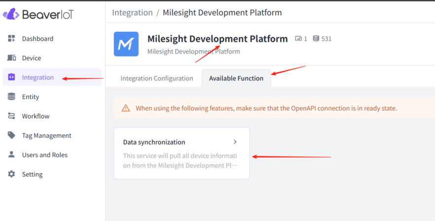 5. Milesight開発プラットフォームからBeaver IoTプラットフォームへVS125-Pデータを同期。