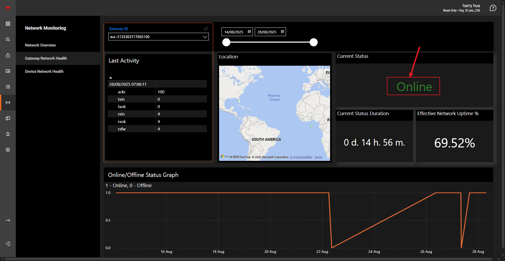 しばらく待ってから、AM103 デバイスのデータアップリンク状態を確認します: