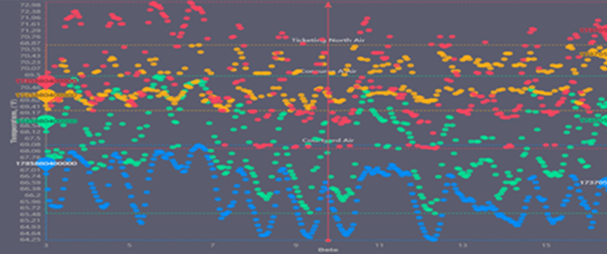 乗客の満足度に影響を与えるもう一つの重要な要素は、室内環境の質です。これは主に、暖房・換気・空調(HVAC)システムの効率に加え、空気中の粉塵、揮発性または可燃性の粒子、CO2濃度など、健康に関連するその他の要素の測定値によって決定されます。従来、これらのシステムはあらかじめ設定されたスケジュールに基づいて動作しており、リアルタイムの状況に適応する柔軟性に欠けていました。この画一的なアプローチは、応答性の低さ、エネルギー利用の非効率性、快適性のばらつき、最適化の機会の逸失など、性能が最適化されない結果を招くことが多々あります。