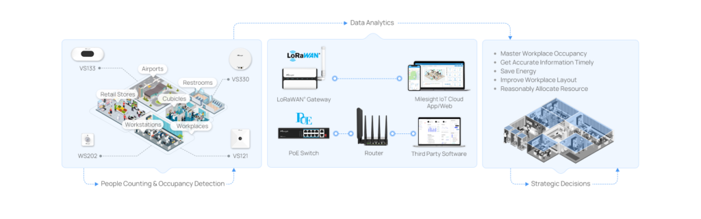 Milesightの革新的なピープル・センシング・ソリューションは、高度な技術を活用して正確なリアルタイムデータを提供し、スマートビルが居住状況や人の流れの変化にシームレスに適応することを可能にします。